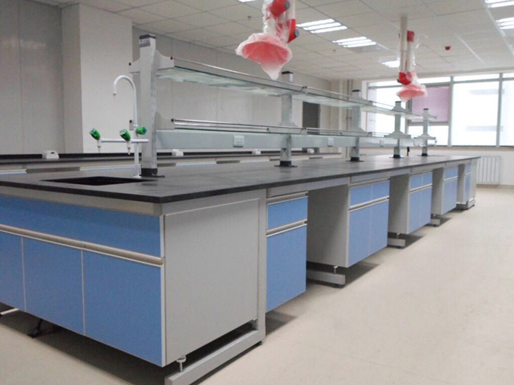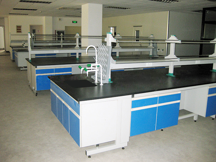 鋼木實(shí)驗(yàn)臺(tái)中間臺(tái)邊臺(tái)有雙面島式、半島式和單面墻式這三類。雙面島式間距一般是不小于130厘米,因此可便于實(shí)驗(yàn)人員可以在四周自由走動(dòng),交通面積比較大,利于疏散;如果臺(tái)前需要設(shè)定配置,例如:貯氣鋼瓶等,那么間距應(yīng)設(shè)定為160-180厘米的凈距離。這種類型的實(shí)驗(yàn)臺(tái)操作時(shí)實(shí)驗(yàn)人員是背靠背操作的,在有需要的情況下可以在通道中間加設(shè)分開(kāi)屏,分開(kāi)屏應(yīng)有難燃材質(zhì)構(gòu)成,以免化學(xué)品致傷反面的實(shí)驗(yàn)人員,此時(shí)間距也應(yīng)增加一點(diǎn)。實(shí)驗(yàn)臺(tái)和通風(fēng)柜之間的間距應(yīng)不小于125厘米。